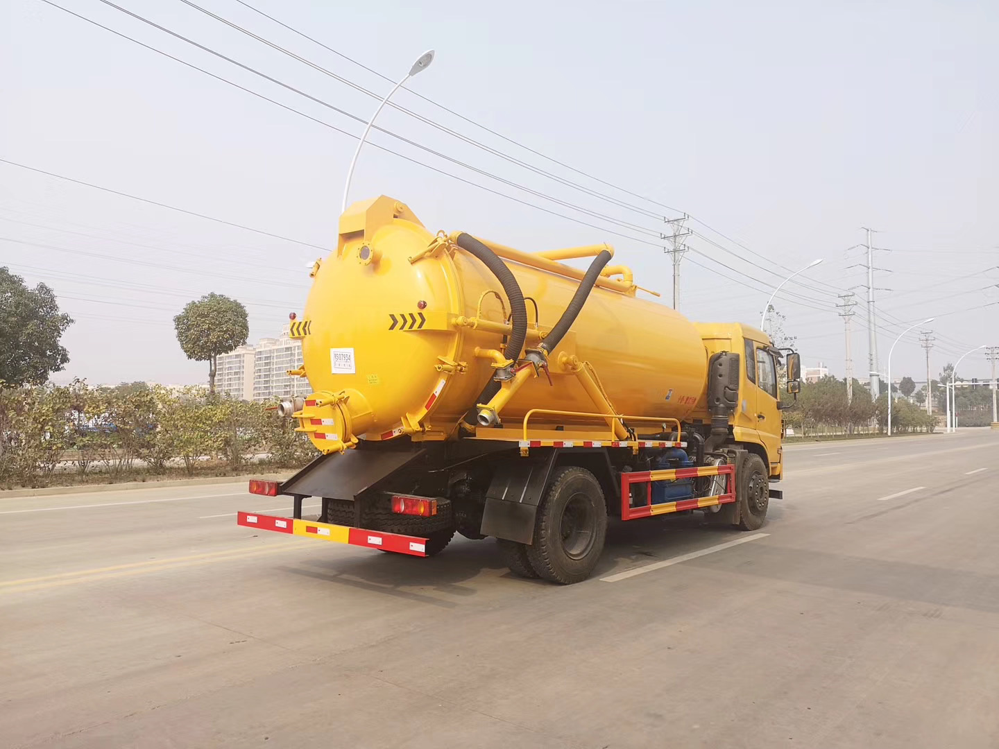 | 整车说明: | 有效容积:12立方米;当轴距为3950时整车长为7880mm,罐体外形尺寸(直段长×直径)(mm)为:4300×1900,当轴距为4500时整车长为8200mm,罐体外形尺寸(直段长×直径)(mm)为:4800×1900;专用装置:罐体,压力泵,主要用于下水道污泥抽吸,清捞,装卸等;ABS生产厂家;东科克诺尔商用车制动系统(十堰)有限公司, 浙江万安科技股份有限公司,型号:3631010-C2000, VIE ABS-Ⅱ.侧面防护装置材料材质:Q235,连接方式:焊接;后下部防护装置材料材质:Q235,连接方式:焊接,断面尺寸(宽×高):60×120(mm),离地高度:450mm.外形长/轴距/前悬/后悬(mm)对应关系:7880/3950/1475/2455,8200/4500/1515/2185. | ||